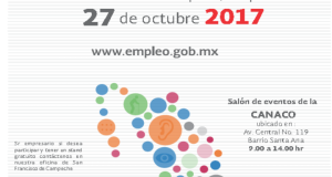 «Quinta Feria Nacional de Empleo para Personas con Discapacidad y Adultos Mayores» que se realizará el día 27 de Octubre del presente año en nuestro Salón de Eventos Canaco ubicado en Av. Central #119 Col. Santa Ana de 9 a 14 hr. El objetivo principal es que si su empresa requiere de mano de obra, se dé la oportunidad a grupos ...